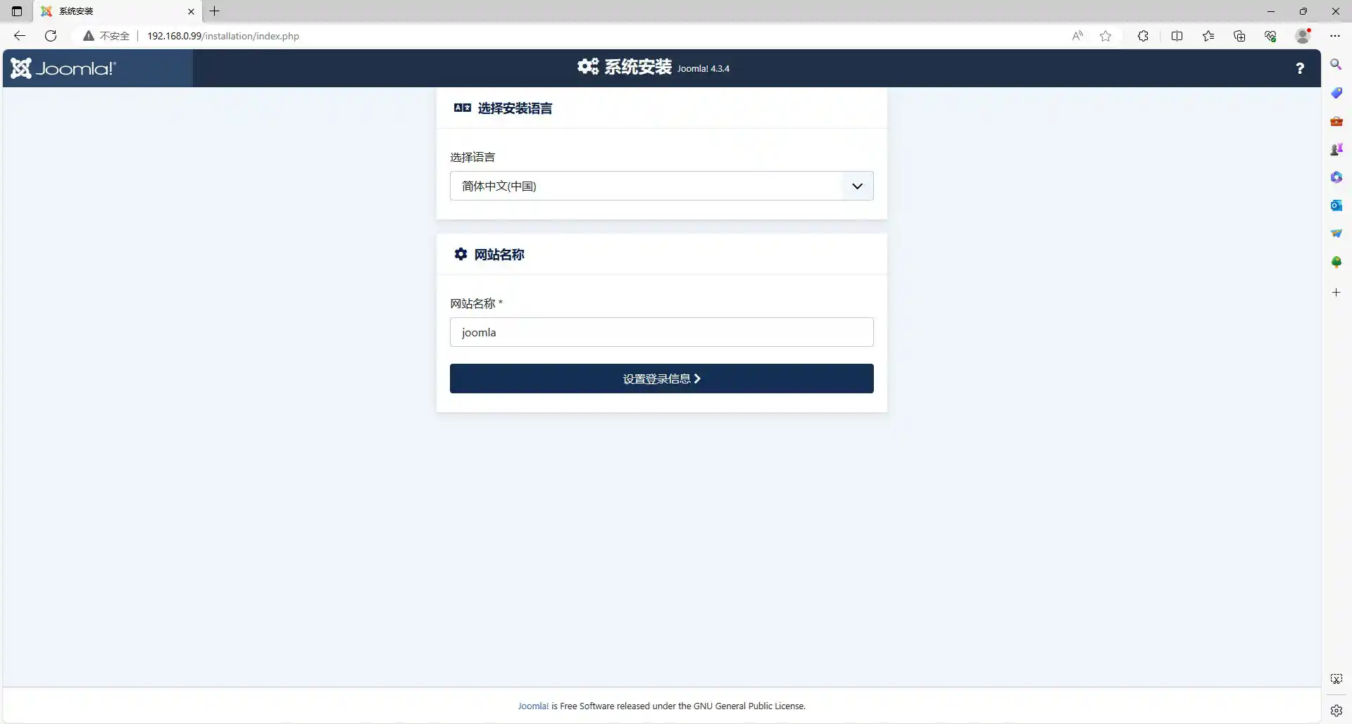 安装包解压缩后,在客户端打开浏览器,地址栏输入服务器IP地址,会自动跳转到安装页面