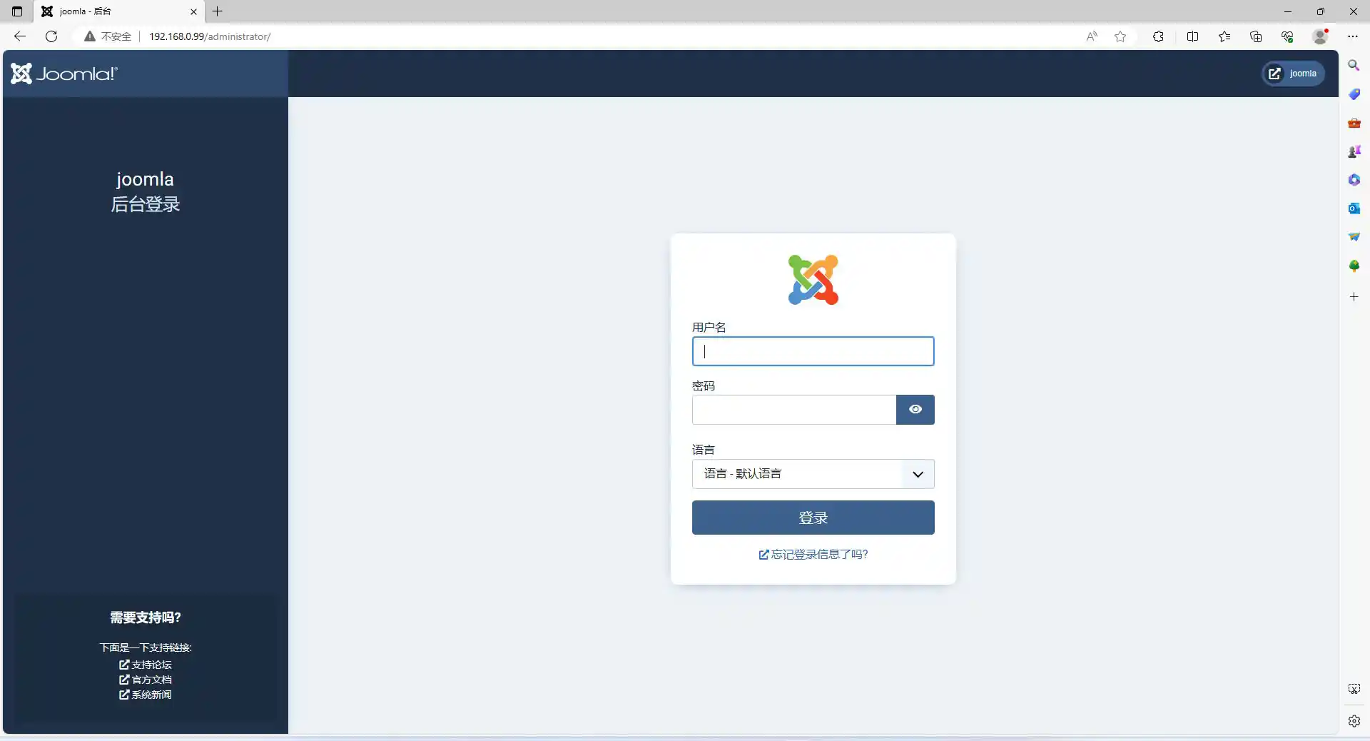 Joomla安装完成后,需要先删除网站根目录中的installation文件夹,然后就可以在浏览器地址栏内输入服务器IP地址/administrator登录后台管理界面。